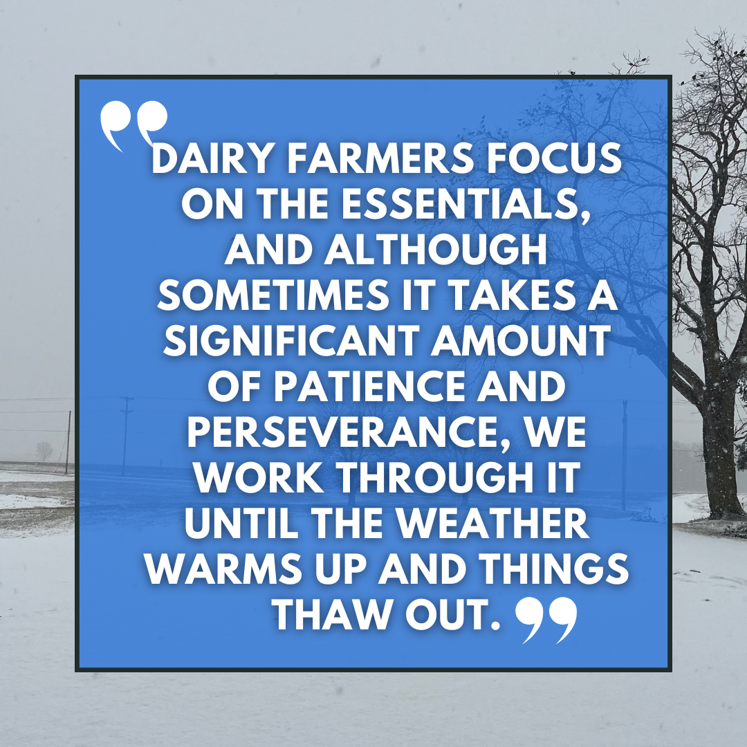 In some ways, we could compare this season to being in the depths of winter. Put plainly, it’s up to each of us to get creative in adjusting and working through it. Despite the incredibly cold weather winter can bring, farm families and employees still focus on what we do day in and day out – we get the cows fed, get them milked, keep them clean and bedded, and make sure they have fresh water to drink. We focus on the essentials, and although sometimes it takes a significant amount of patience and perseverance, we work through it until the weather warms up and things thaw out.