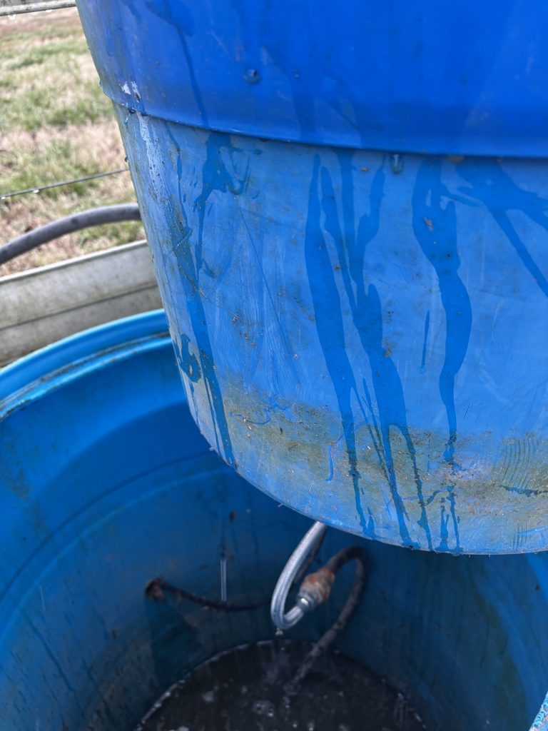 With starting a dairy, expenses were high and cash was running low by the time it came to install the pasture and barn waterers. With a need for 10+, we needed a lower cost solution to the typical frost-free automatic waterers. When we exhausted our search, we decided the only solution was to get creative and build something on our own. These waterers were built for around $100 each and 20 years later they are still working great. They allow us virtually maintenance-free watering even in the freezing winter temps.