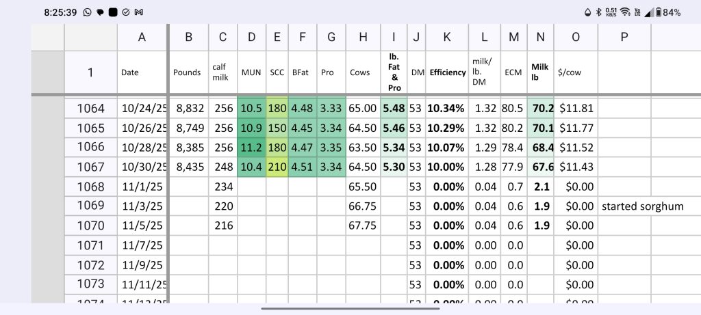 Spreadsheet to track bulk tank milk, components, and SSC for our milking cows.