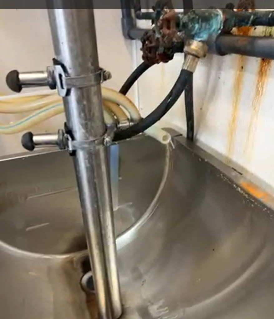We feed our calves with a milk taxi, so we needed a way to cool the milk without all the water waste. We run the warm water that comes out of the pasteurizer into the wash sink. We then use the water to clean the pasteurizer and wash it off after feeding the calves.